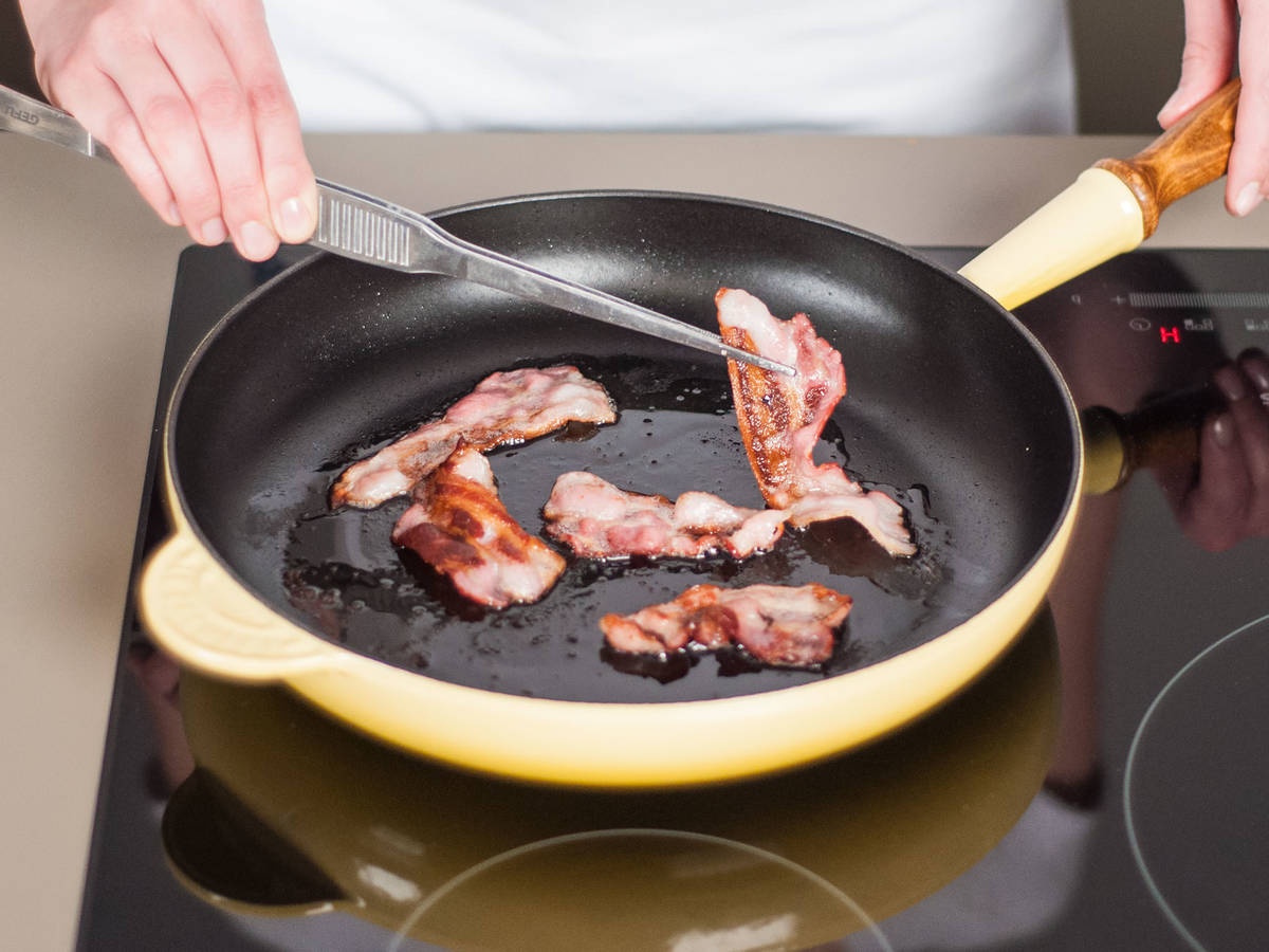 - Áp chảo thịt xông khói trên mức lửa vừa khoảng 5-8 phút đến khi chín vàng.