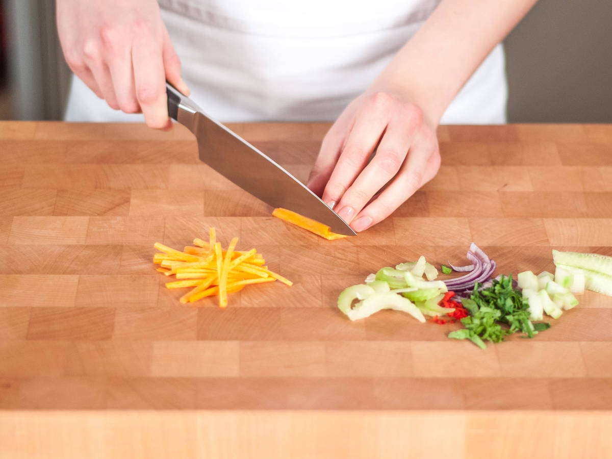 - Cắt nhỏ các loại rau thơm, cần tây.