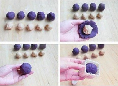 Không có lò nướng, bạn vẫn có thể tạo nên những chiếc bánh trung thu màu tím xinh xắn, ngon miệng.