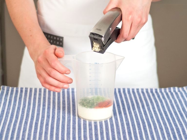 - Thêm tỏi ép và khuấy đều để các thành phần kết hợp.