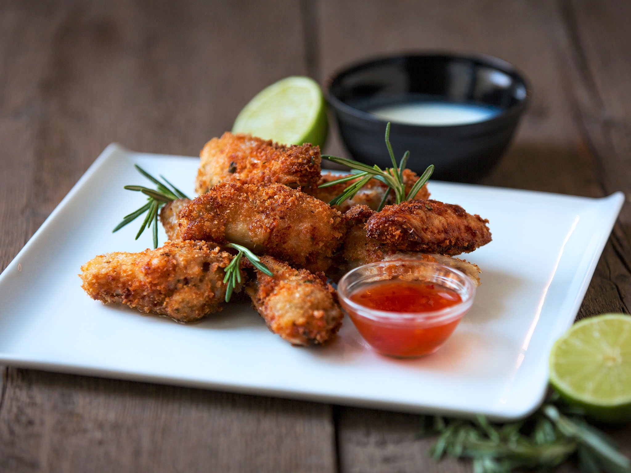 - Sau đó phủ lên cánh gà lớp vụn bánh mì, đảm bảo chúng được phủ đều các mặt.
