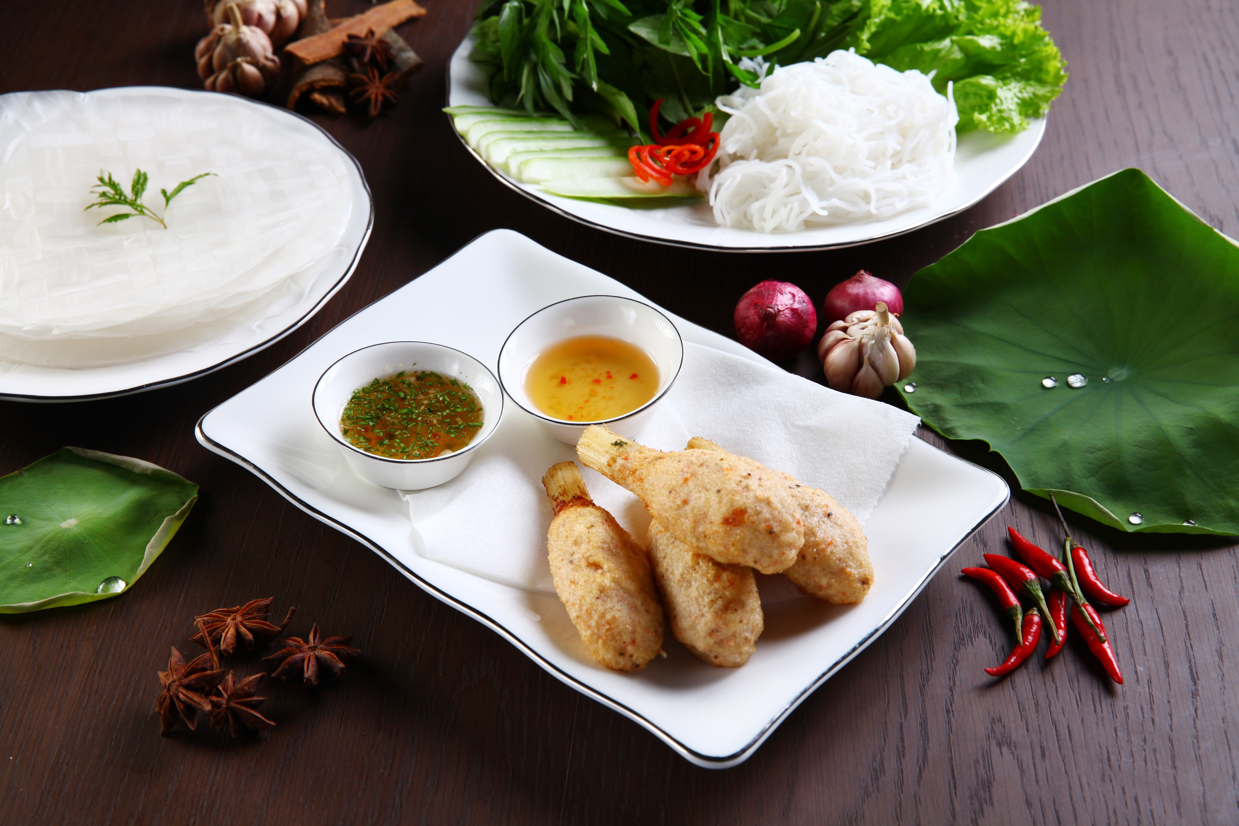 Nước sốt: 3 muỗng canh tương ớt + 2 muỗng canh đường + 1 muỗng anh dấm + 4 muỗng canh nước. Trộn đều. Khi ăn, trộn thêm 20 gram cà rốt bào mỏng + 20 gram củ cải trắng bào mỏng và đậu phộng rang vàng, đập dập.