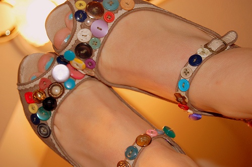 Khéo léo kết hợp những chiếc cúc áo đa dạng kích thước và màu sắc, bạn gái sẽ sở hữu những chiếc vòng cổ, thắt lưng thậm chí là một đôi dép ấn tượng.
