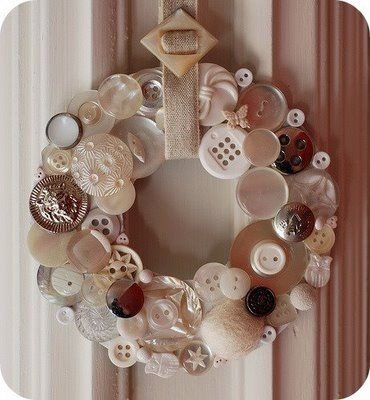 | Những chiếc cúc áo cũng tô điểm cho vòng treo cửa. Chỉ vần bạn sưu tập đủ số lượng cúc, kim chỉ, keo, súng bắn keo cùng với sự tỉ mỉ và khéo léo, bạn sẽ biến những đồ vật cũ trở nên ấn tượng và xinh xắn hơn nhiều. |