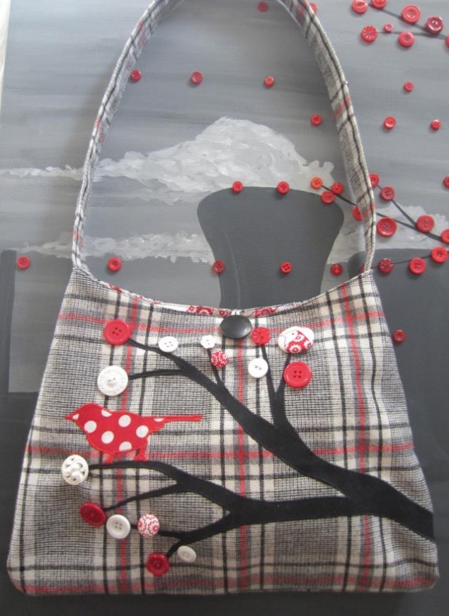 | Ngay cả các loại túi xách, ví bằng vải bạn cũng có thể trang trí bằng những chiếc cúc áo. |