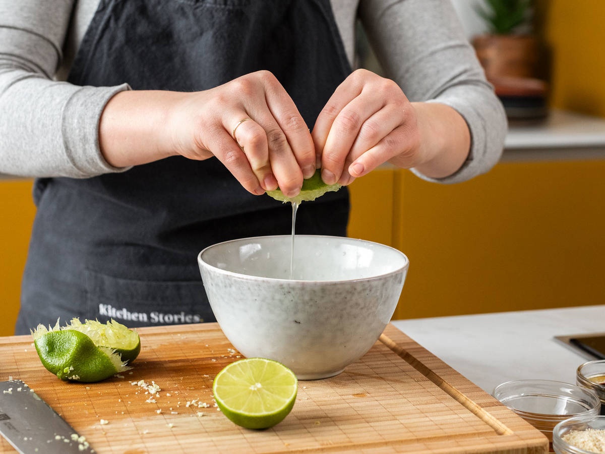 - Cho sả, nước cốt chanh, dầu mè, xì dầu, đường, giấm gạo và ớt vào tô rồi trộn đều.