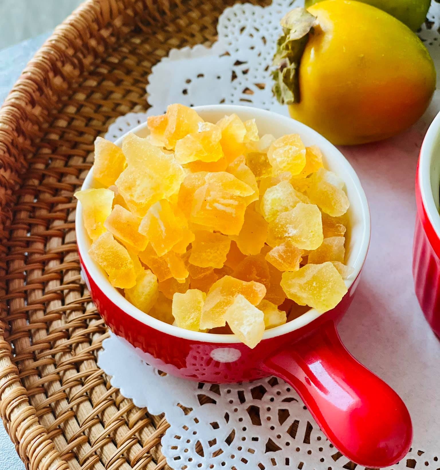 - Kẹo thành phẩm trong, dẻo, ráo tay, vị chua ngọt là đạt. Cho vào hộp cất tủ lạnh dùng dần.