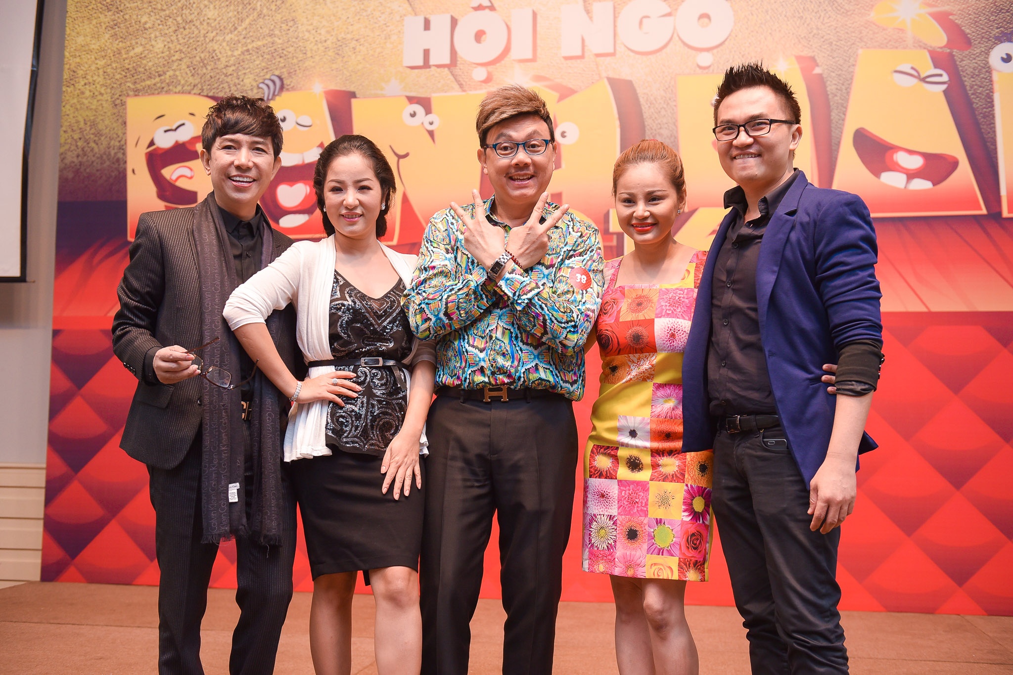 Các nghệ sĩ chụp ảnh lưu niệm khi buổi họp báo kết thúc. Tập đầu tiên của chương trình sẽ được phát sóng tối 26/12 trên HTV7 lúc 21h. |