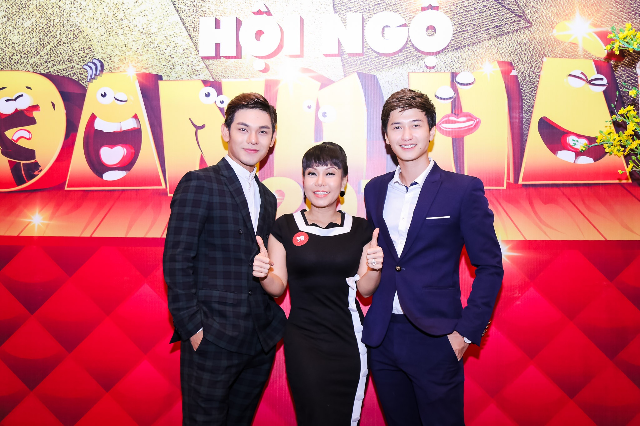 Việt Hương tranh thủ chụp ảnh cùng hot boy Huỳnh Anh và Sơn Ngọc Minh. "Vợ Sáu Bảnh" từng tham gia mùa đầu tiên nhưng vì 2 năm gần đây, lịch trình bận rộn nên chị lỡ hẹn cùng mọi người. Phải đợi đến năm thứ 4, nữ danh hài hải ngoại mới trở lại cùng Chí Tài trong vai trò MC. |