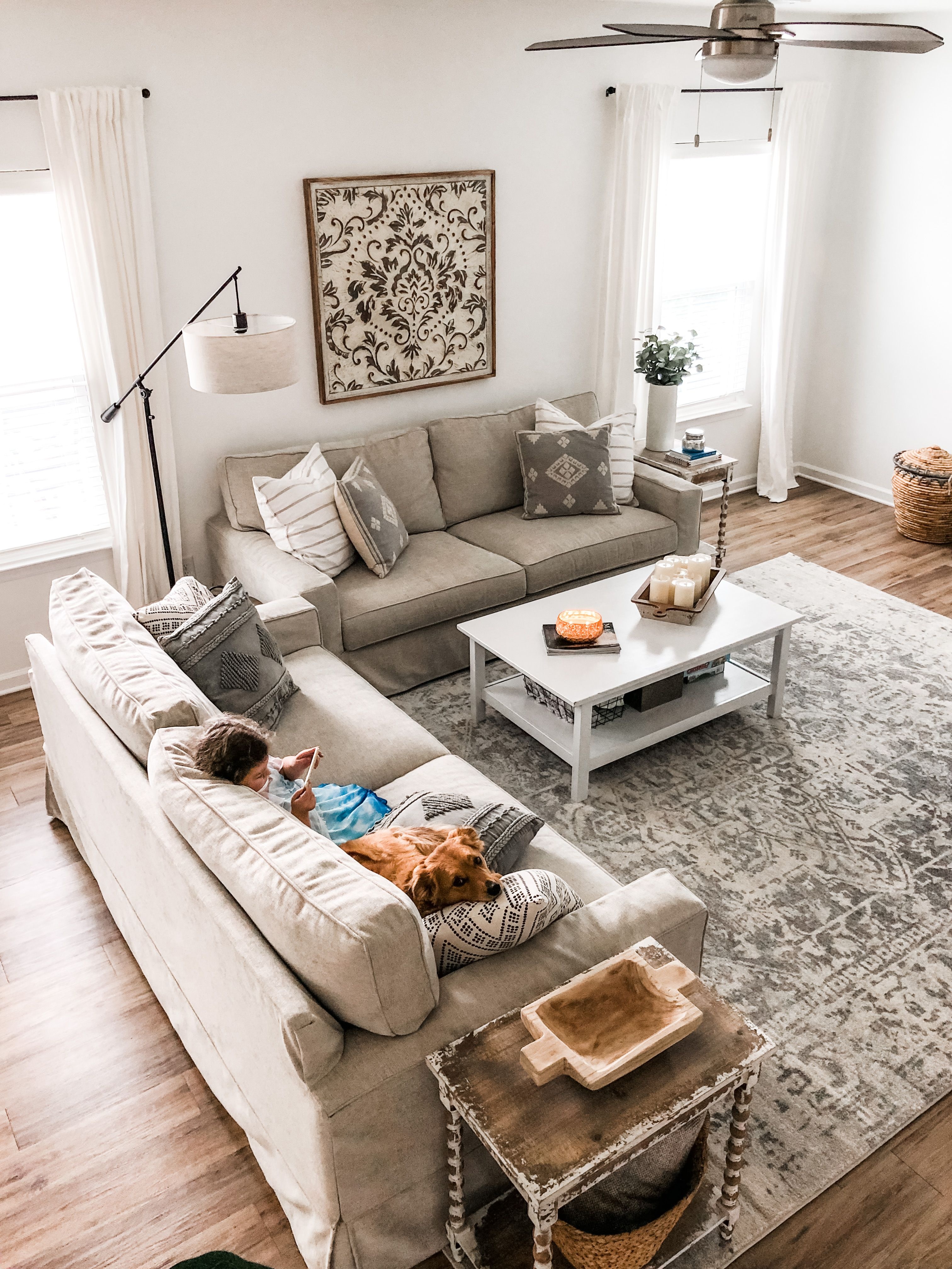 Các bộ sofa to, theo các tông màu trung tính được đặt ở giữa phòng khách sẽ tạo nên một điểm sáng ở phòng khách thiết kế Scandinavian.