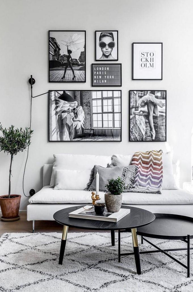 Một chiếc thảm lông hay những bức tranh độc đáo sẽ giúp phòng khách của bạn nổi bật hơn nhưng không mất đi tinh thần đơn giản của phong cách thiết kế.
