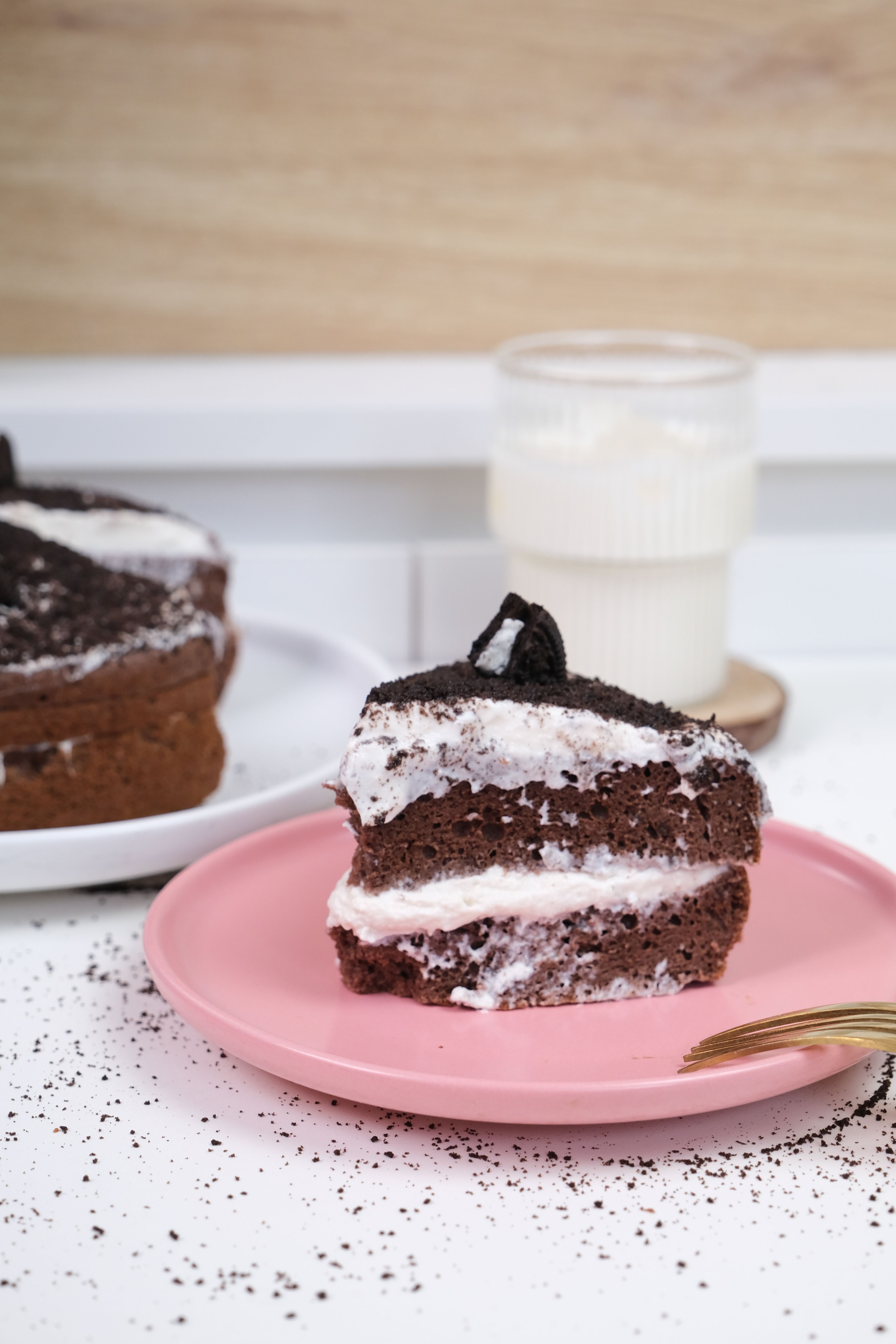 - Bước 3: Cắt bánh gato làm 2 phần, phết kem sữa chua vào giữa rồi đặt phần còn lại lên trên, phết tiếp kem lên mặt bánh. Cuối cùng, rắc thêm vụn oreo để trang trí.