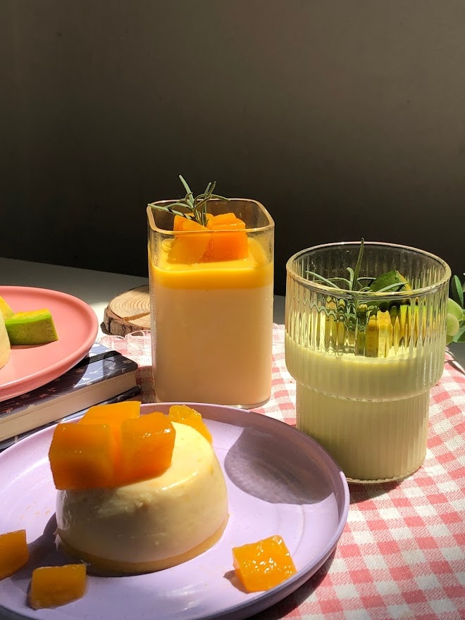 - Bước 1: Xay nhuyễn bơ với 150 ml sữa tươi và 25 ml nước cốt dừa. Bạn làm tương tự với xoài.
