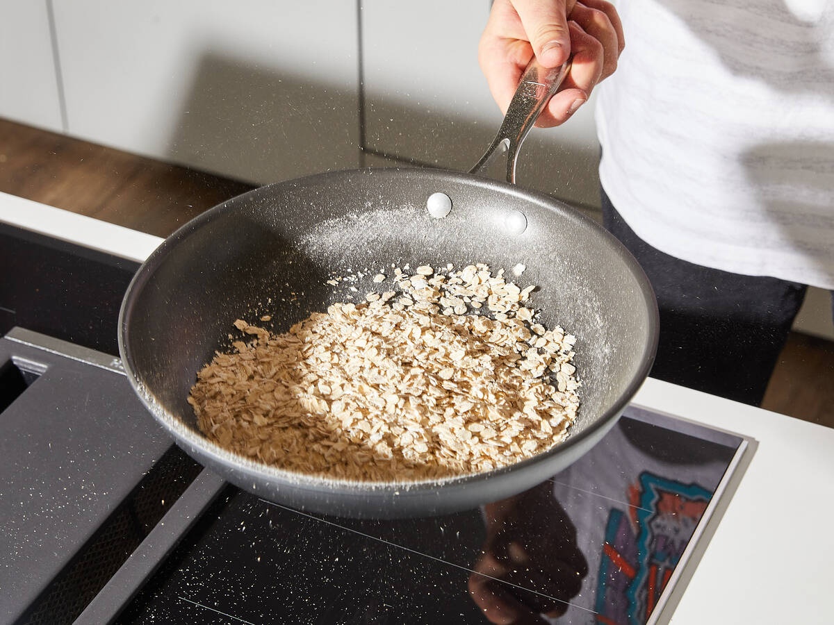 - Lấy yến mạch ra khỏi chảo và để sang một bên, lau sạch chảo nếu cần.