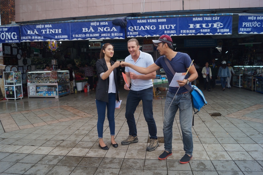 “Bạn có phải người bạn đường hợp ý không? Có, chúng ta sẽ rất hợp ý” - đó là câu mật khẩu mà hai thành viên phải sử dụng để tìm ra đồng đội. Anh chàng và cô nàng này đã có một buổi chạy lòng vòng tại chợ Đông Ba , toát mồ hôi để tìm bạn lạc.