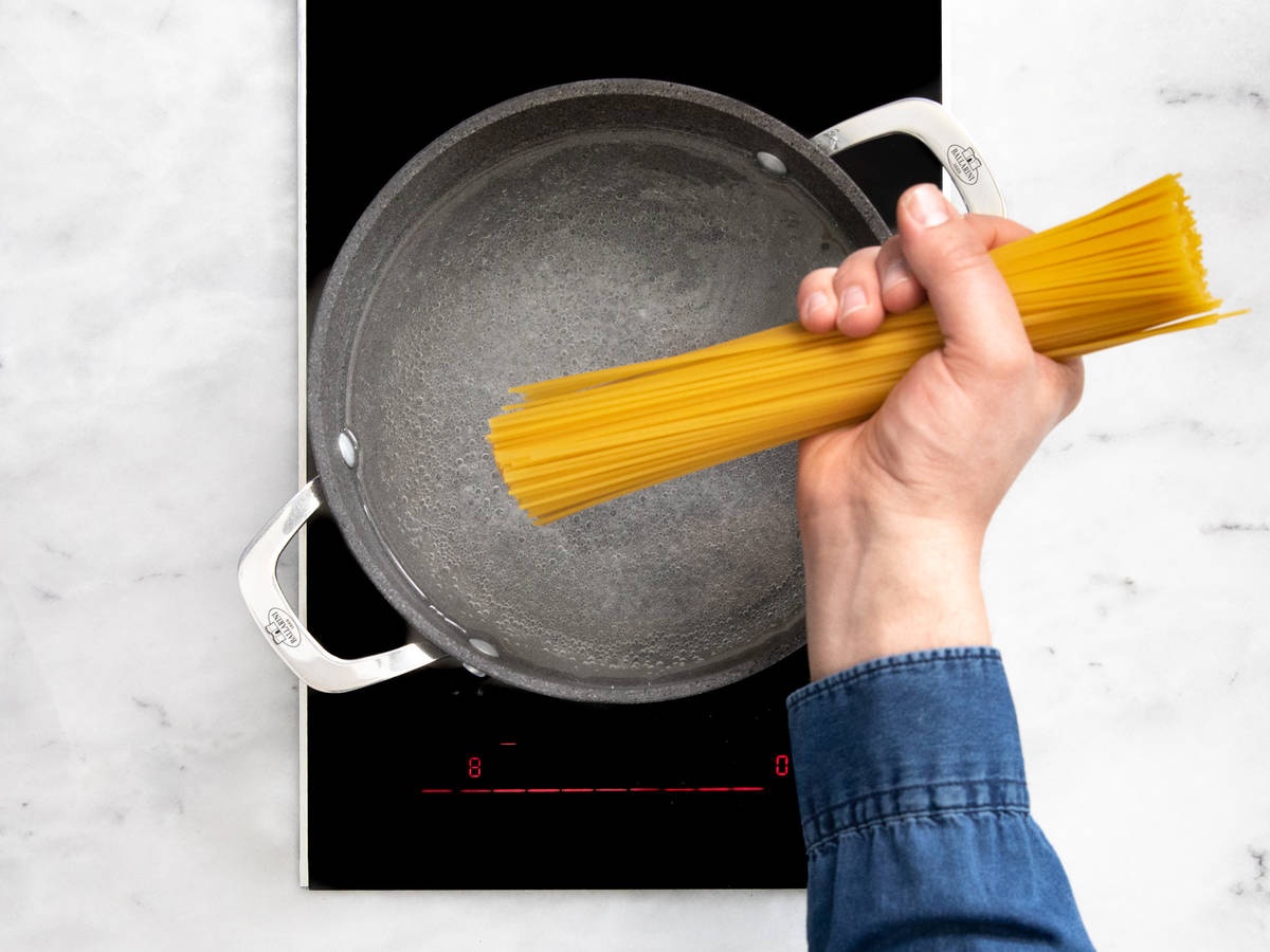 - Khi nước sôi, nêm muối và luộc mì cho chín.