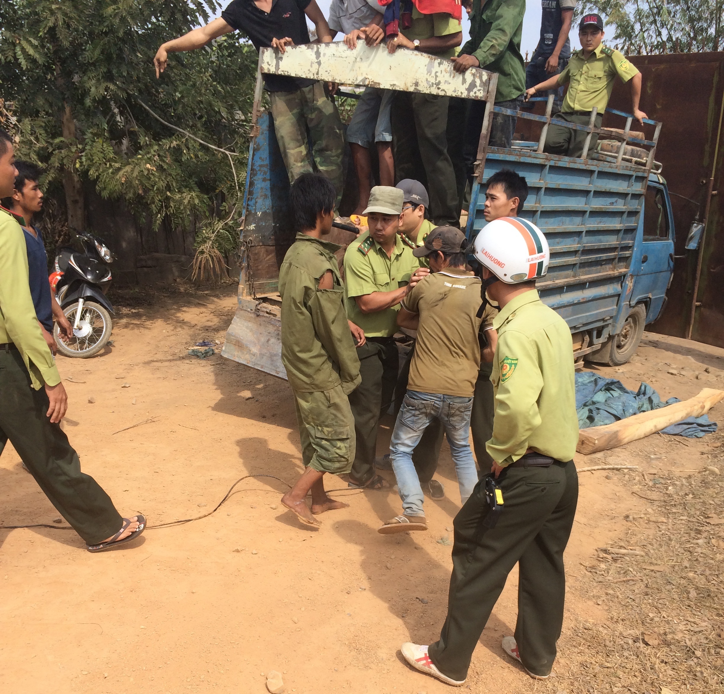 Theo ông Tùng, trong quá trình xô xát, một cán bộ kiểm lâm bị thương ở đầu. Do lực lượng chứng năng kiên quyết nên các thanh niên đã vứt gỗ xuống đất rồi lấy xe bỏ trốn.