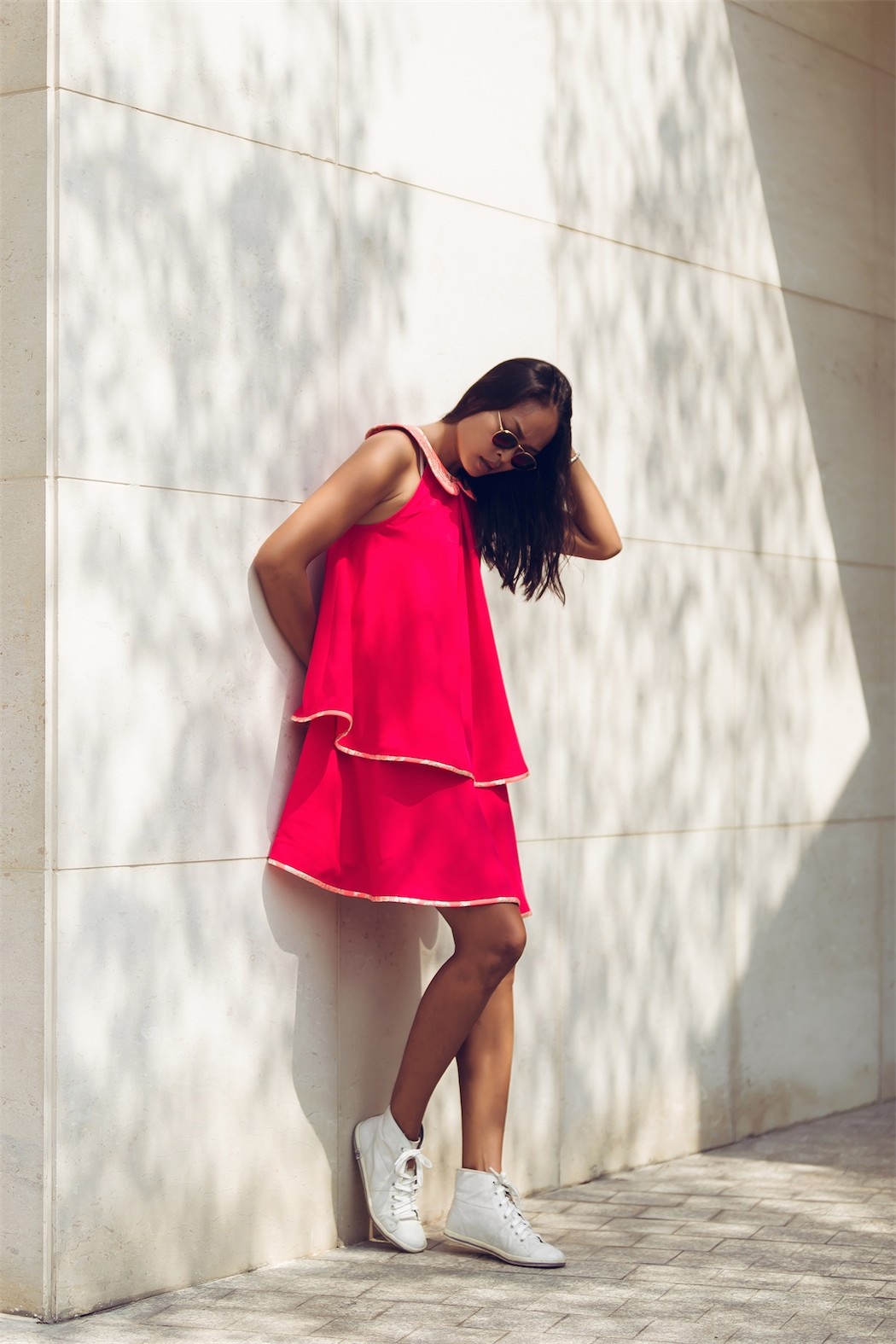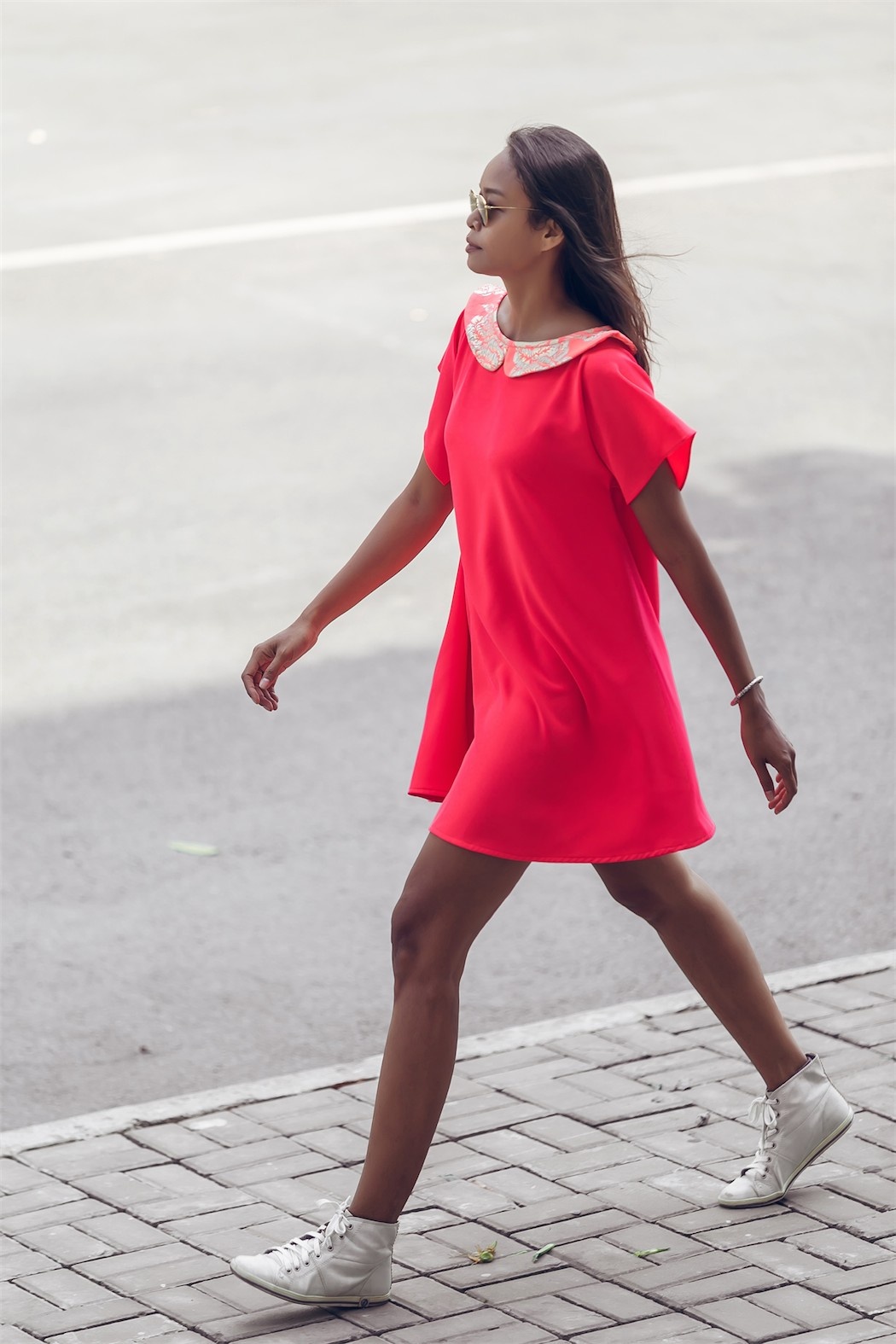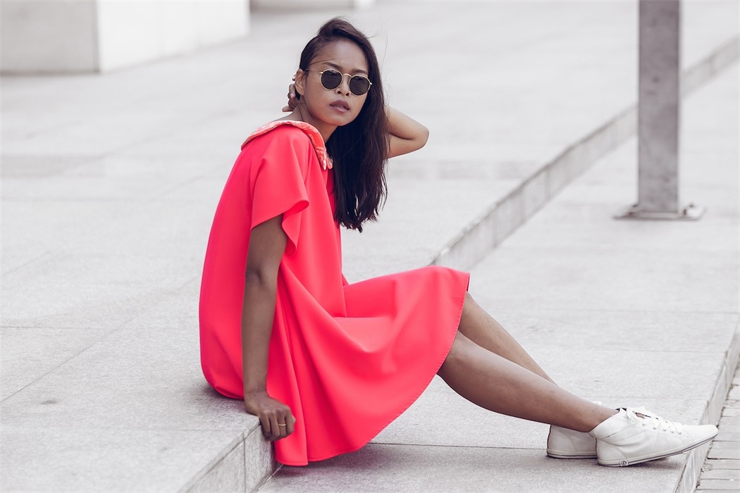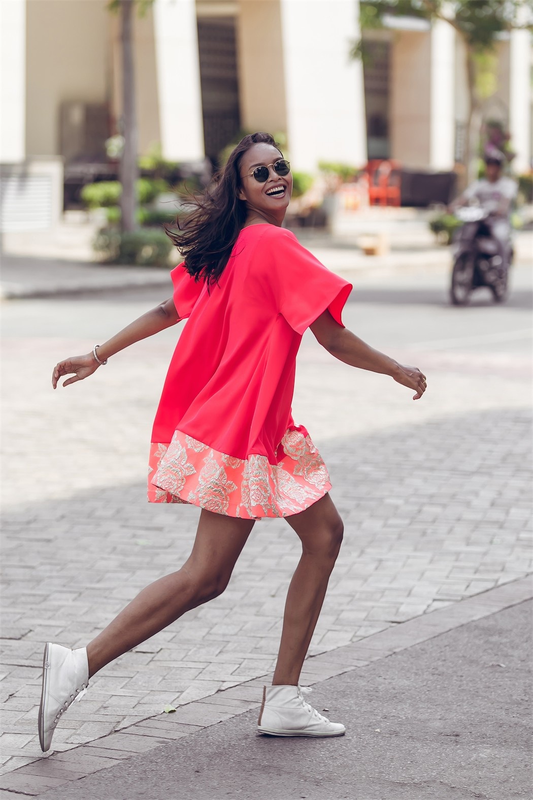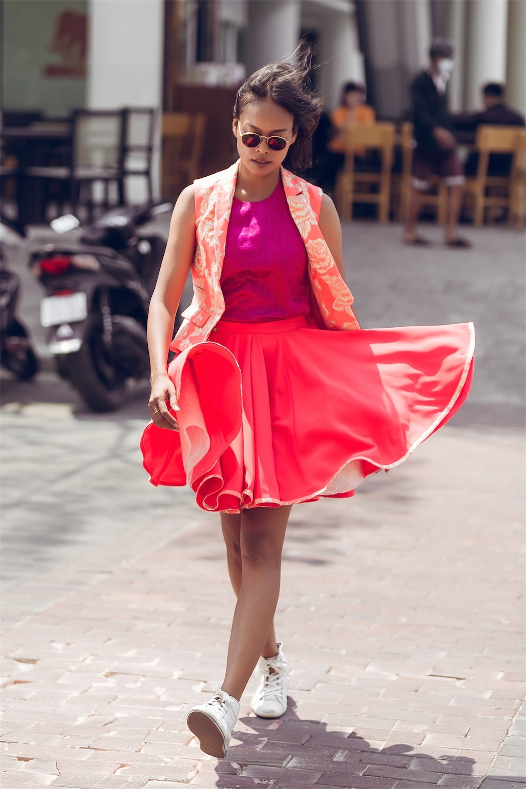 | Nước da bánh mật khỏe khoắn là lợi thế giúp Lâm Thu Hằng trở thành gương mặt được nhà thiết kế tin tưởng. Vẻ đẹp đối lập của da nâu và chất vải tươi sáng tạo nên sức cuốn hút cho từng khung ảnh. Trên đường phố, nữ người mẫu sinh năm 1987 tự tin thể hiện ý tưởng của ê-kíp hình ảnh. |