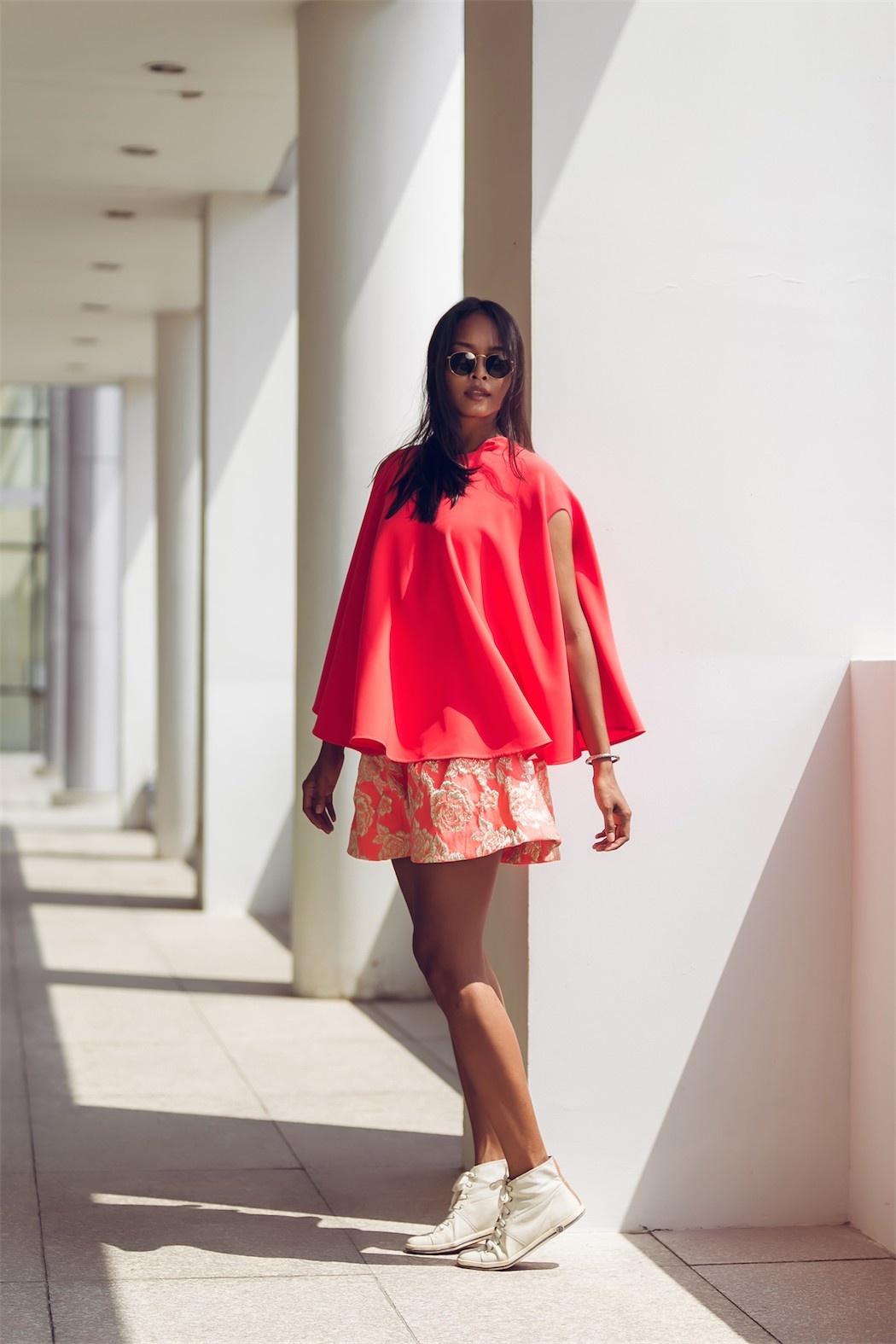 | Cách mix&match giữa quần shorts gấm và áo bồng xòe mang lại nét duyên dáng, nữ tính cho các cô gái. |