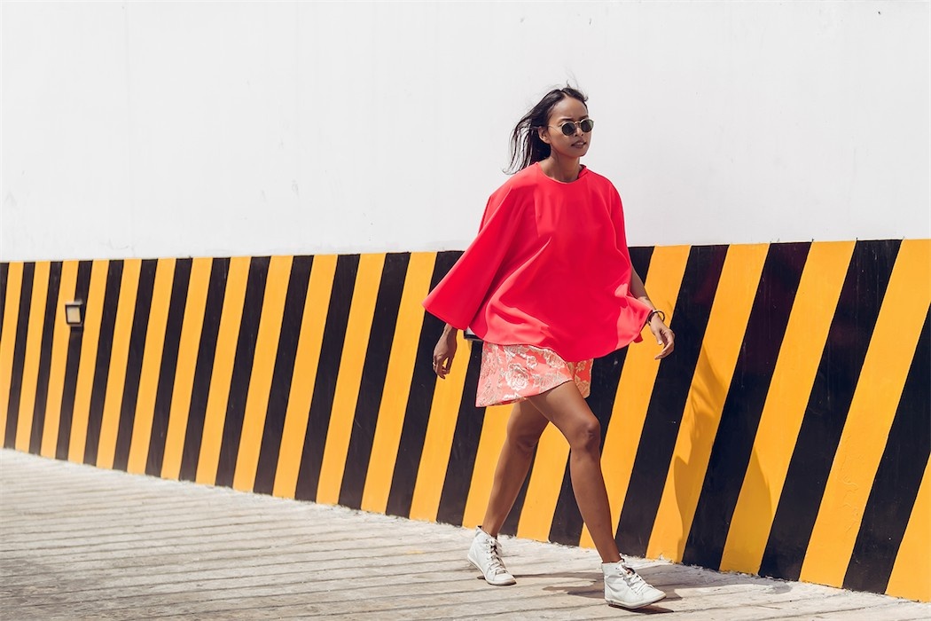 Lâm Thu Hằng diện gấm hoa bắt mắt xuống phố ngày hè
