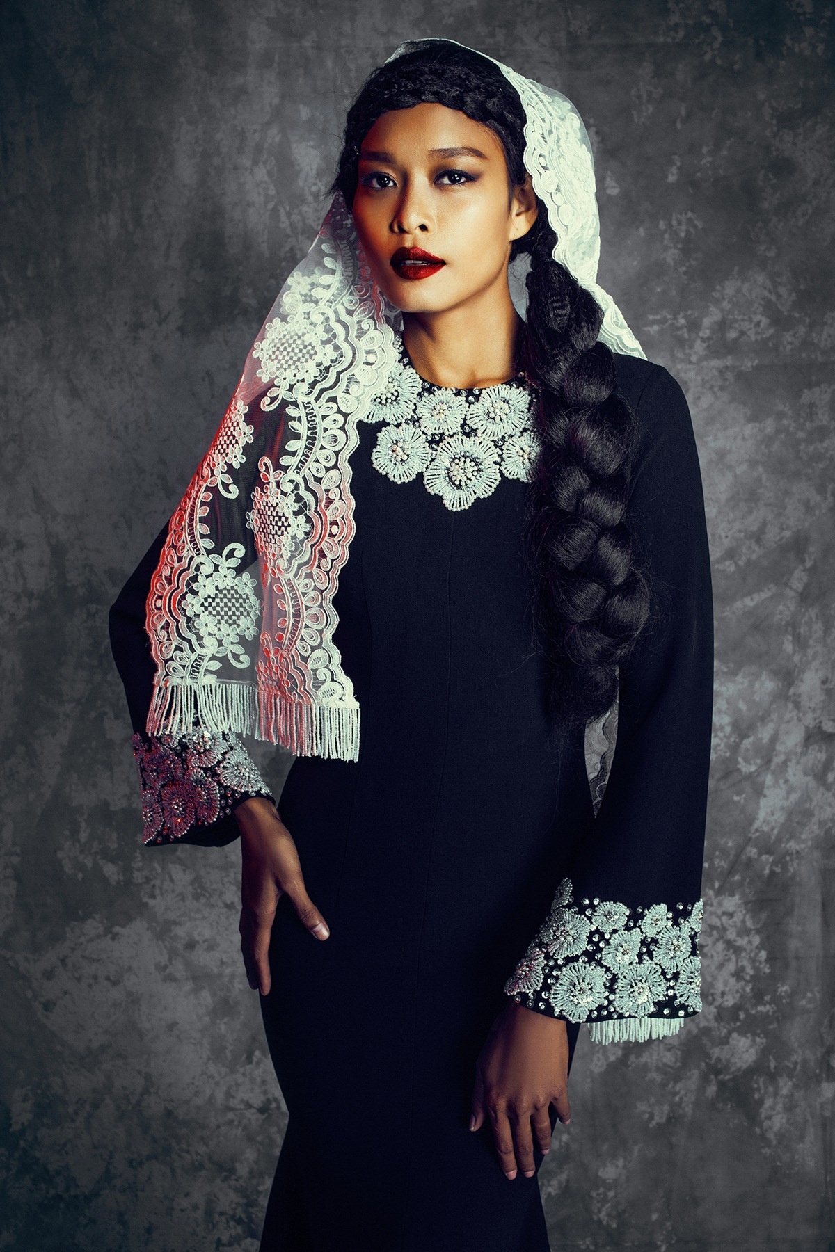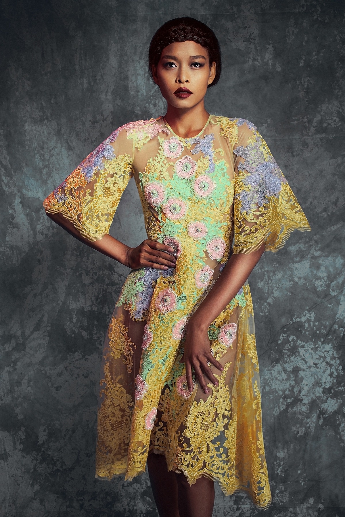 | Lâm Thu Hằng sở hữu làn da nâu bánh mật khỏe khoắn, cô là chọn lựa phù hợp trong bộ ảnh thời trang đậm chất art. Làn da nâu đậm màu trở thành hình ảnh tương phản thú vị khi nữ người mẫu khoác lên mình bộ cánh có gam màu sáng tối tinh tế. Ren tiếp tục trở thành điểm nhấn cổ điển trong mẫu váy này. |