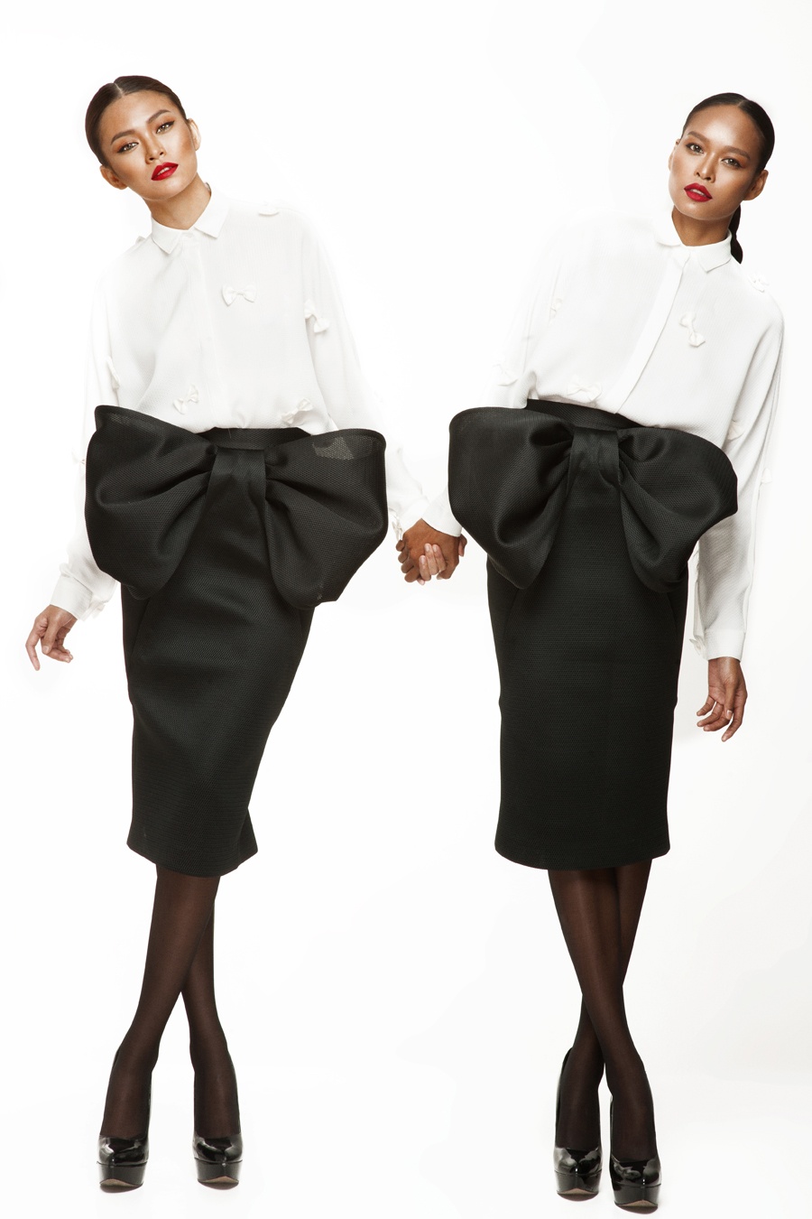 | Những chiếc nơ duyên dáng trở thành phụ kiện chính, được đính ăn ý trên trang phục. Đây cũng là điểm nhấn ấn tượng của BST lần này. |