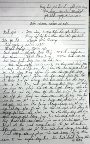 Trong bản trường trình, thầy giáo Dương thuật lại: "Chiều ngày 12/11, tôi dạy tiết toán thứ 3 ở lớp 4D. Sau phần bài mới, tôi ra bài tập trong sách giáo khoa cho học sinh làm.