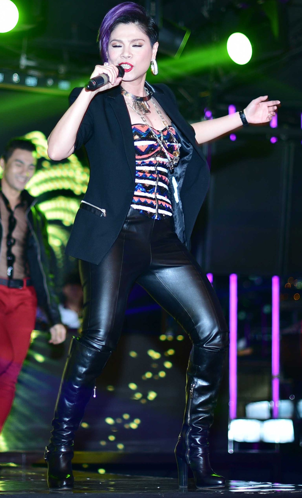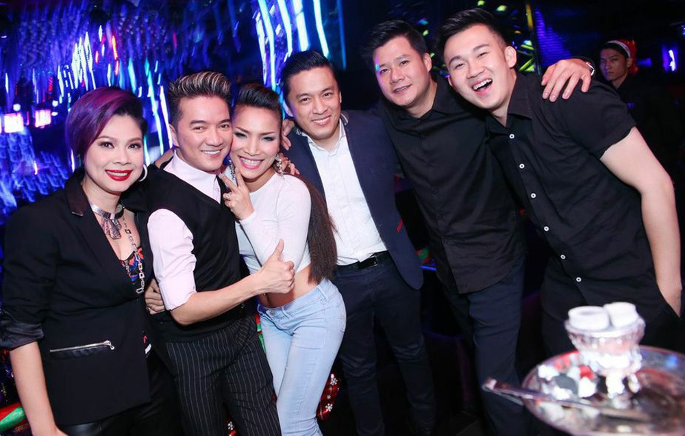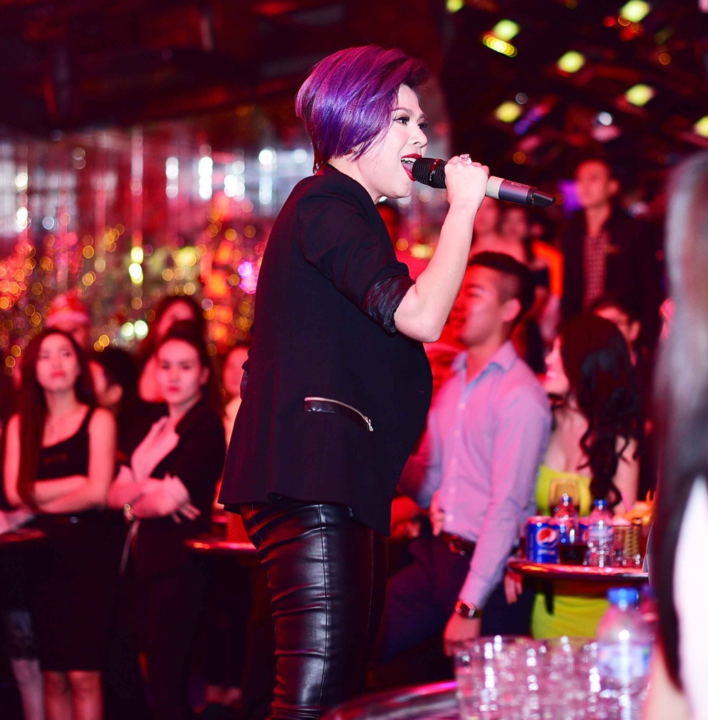 | Bà mẹ hai con mặc áo crop top để lộ bụng mỡ kém thon khi đến nghe nhạc ở quán bar của Đàm Vĩnh Hưng. Do mới khai trương nên thời gian này, giọng ca Dạ khúc cho tình nhân thường xuyên có mặt tại đây để giao lưu với khán giả của mình. |