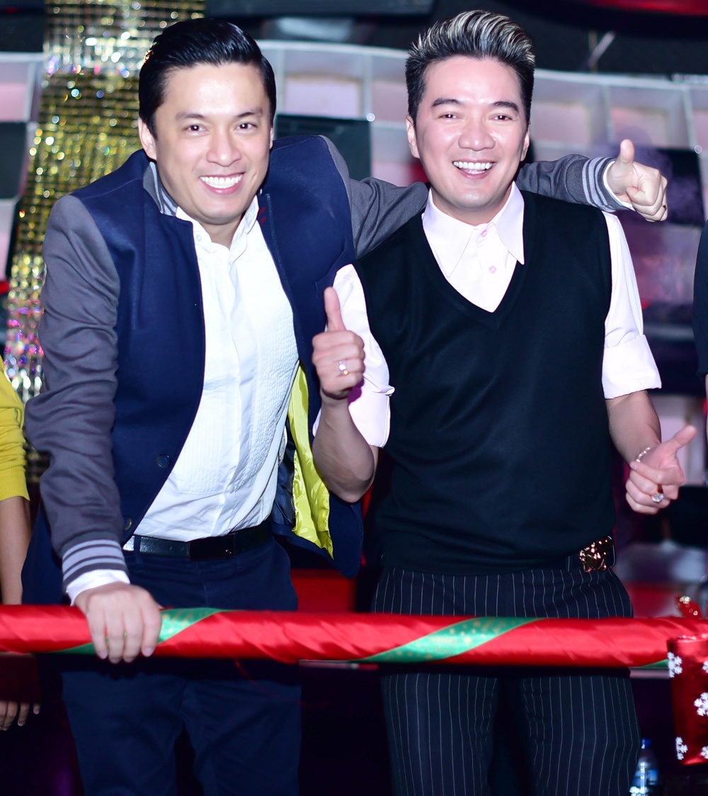 | Đàm Vĩnh Hưng vui vẻ chụp hình cùng Lam Trường. Ngoài đời, họ là những người bạn rất thân. Trong đám cưới của anh Hai, Mr.Đàm cũng lên sân khấu hát để cô dâu và chú rể khiêu vũ. |