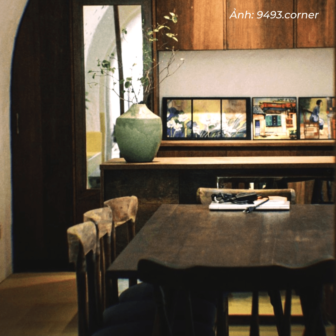 Không gian nổi bật với kiến trúc gỗ mộc mạc và đầy tính nghệ thuật. Nơi đây đặc biệt phù hợp cho các bạn làm công việc sáng tạo hoặc những ai muốn đến ngồi tâm sự và chụp hình.