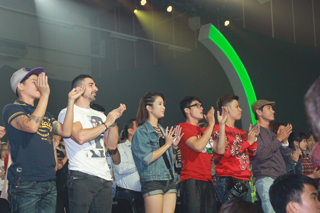 Dưới hàng ghế khán giả, các biên đạo trong và ngoài nước cùng các vũ công cũng đồng loạt đứng dậy vỗ tay. |