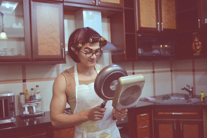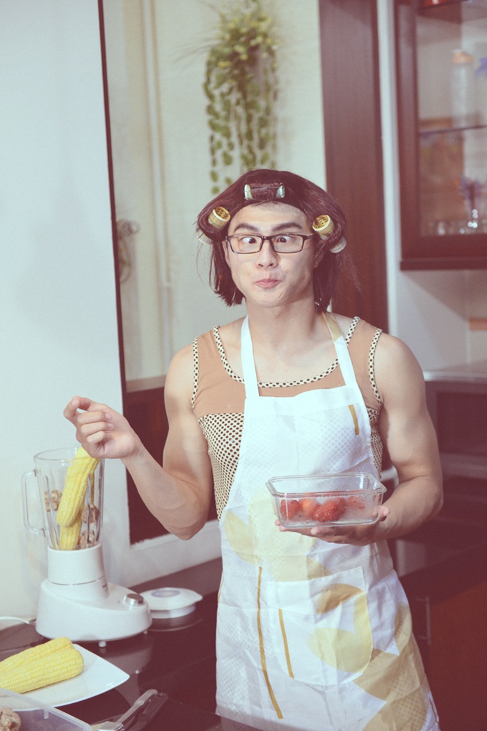 | Trong MV, Lâm Vinh Hải đã giả gái để thực hiện nhựng công việc hằng ngày mẹ làm như: giặt đồ, dọn dẹp phòng, nấu ăn... |