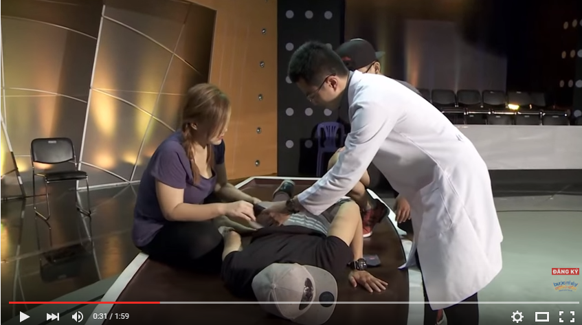 Bác sĩ chẩn đoán cho Vinh Hải tại trường quay. |