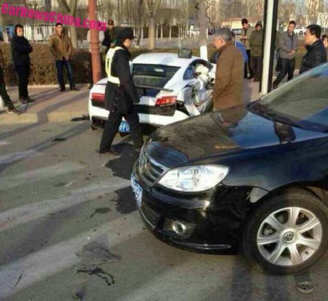 Chiếc Lamborghini Gallardo LP 570-4 Super Trofeo Stradale với dải decal Squadra Corse nổi bật vừa gặp một tai nạn nghiêm trọng. Vụ việc xảy ra tại thành phố Thiên Tân, Trung Quốc.