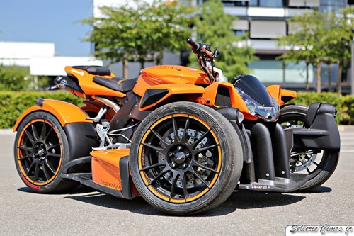 Siêu mô tô độ Lazareth Wazuma sử dụng động cơ của Ferrari, công suất 250 mã lực, kết hợp cùng hộp của chiếc BMW M3 và hệ thống phanh thể thao Brembo.
