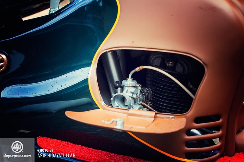 | Bộ chế hòa khí Dell’Orto MA18BA vẫn được giữ nguyên bản. Trong khi đó, giảm xóc trước được thay thế bằng loại tương tự của Lambretta. |