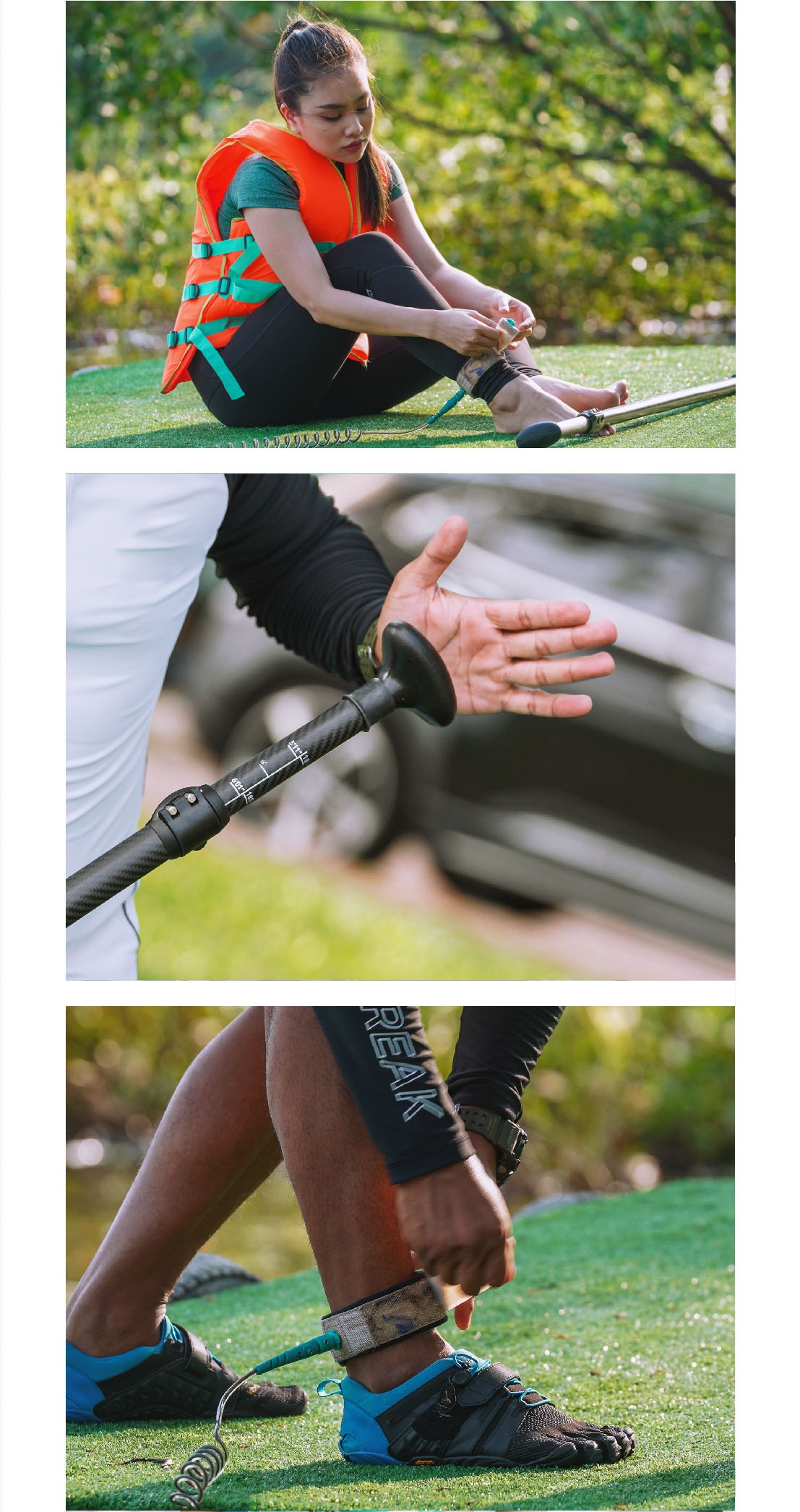 Lưu ý, phần dây an toàn nối liền ván chèo và cổ chân là yếu tố bắt buộc, bất kể với người mới tập hay dân chuyên nghiệp.
