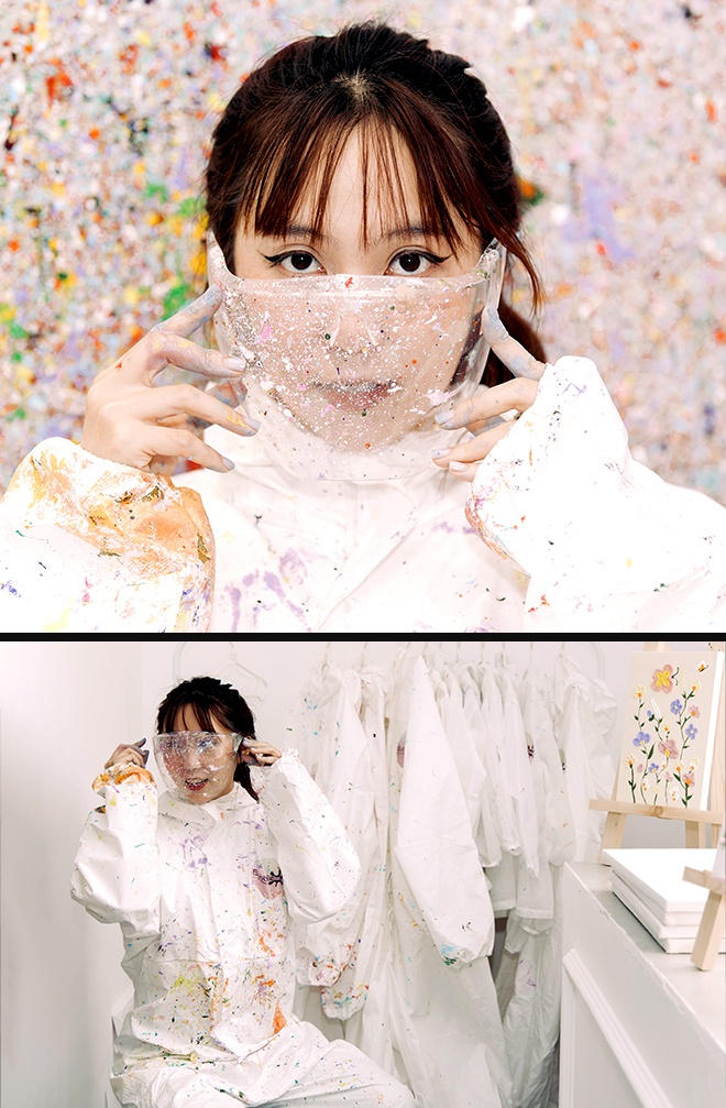 "BÙM", âm thanh đó khiến tôi và nhiều người bên cạnh giật mình. Trong chớp nhoáng, bạn sẽ thấy bức tranh được phủ lên gam màu mới. Những tia màu được bắn ra một cách tự do, văng đến quần áo bảo hộ, 2 bên tường, dưới sàn. Nhưng điều này mới chính là thứ khiến chúng tôi hưng phấn nhất.