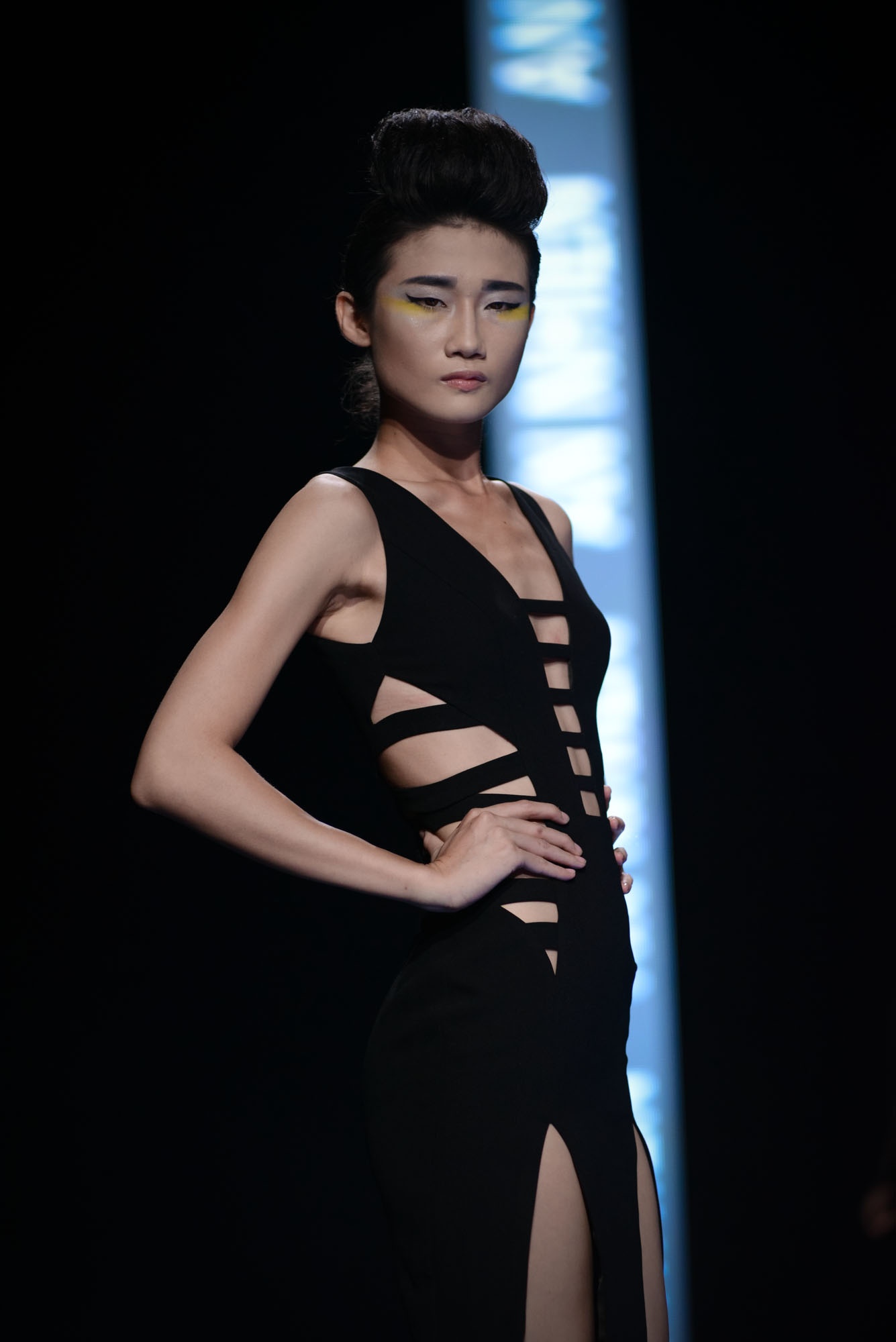 Những chiếc váy được cắt xẻ mạnh mẽ tại vùng nhạy cảm được các người mẫu chuyên nghệp thể hiện tự tin trên sàn diễn củaTuần lễ thời trang thu đông 2014.