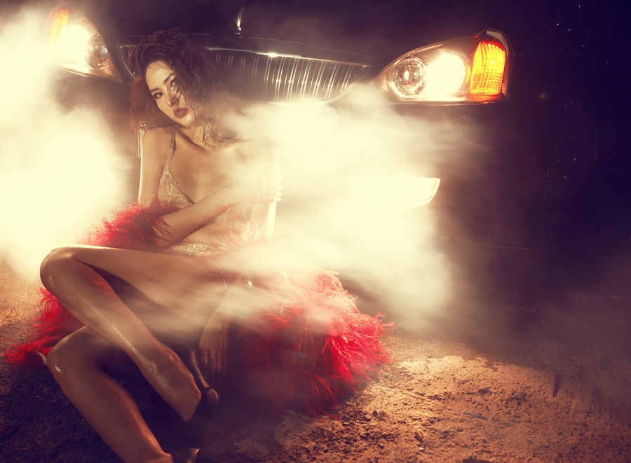 | Trong bộ ảnh thời trang mới, nữ người mẫu Lan Khuê cùng đàn chị Thanh Hoài khoe vóc dáng gợi cảm với nội y sexy. Bối cảnh thực hiện tại một gara ô-tô. |