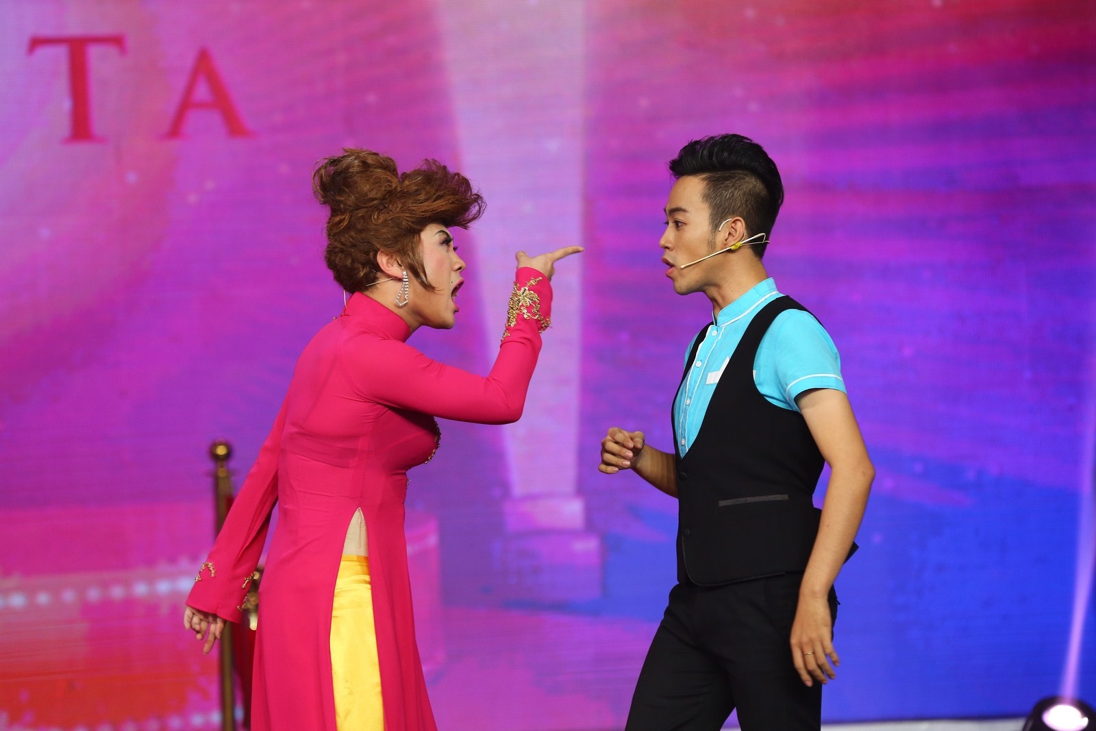 | Don Nguyễn tiếp tục giả gái trong tiểu phẩm Hoa hậu làng em. |