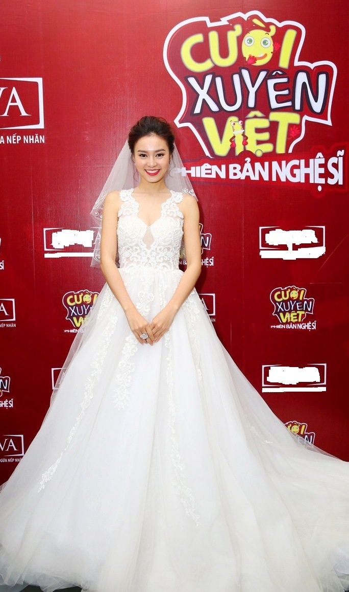 | Lan Ngọc xinh đẹp trong váy cưới. Trước giờ lên sân khấu, diễn viên Cánh đồng bất tận bị đau bụng nhưng vẫn cố gắng hỗ trợ người yêu cũ. |
