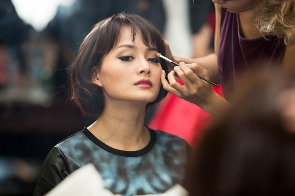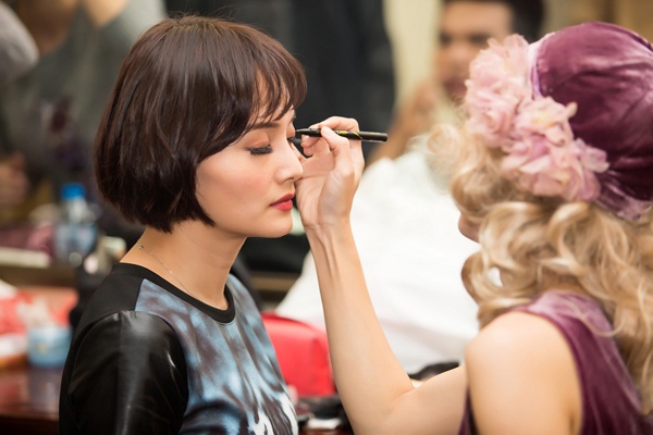 | Lan Phương vừa có buổi biểu diễn thành công vở tại Nhà hát Lớn, Hà Nội. Cô đảm nhận vai người phụ nữ bị nhiều người ghét nhất - mụ Phó Đoan. Nữ diễn viên đến từ sớm để hóa trang và chuẩn bị trang phục trước khi lên sân khấu. |