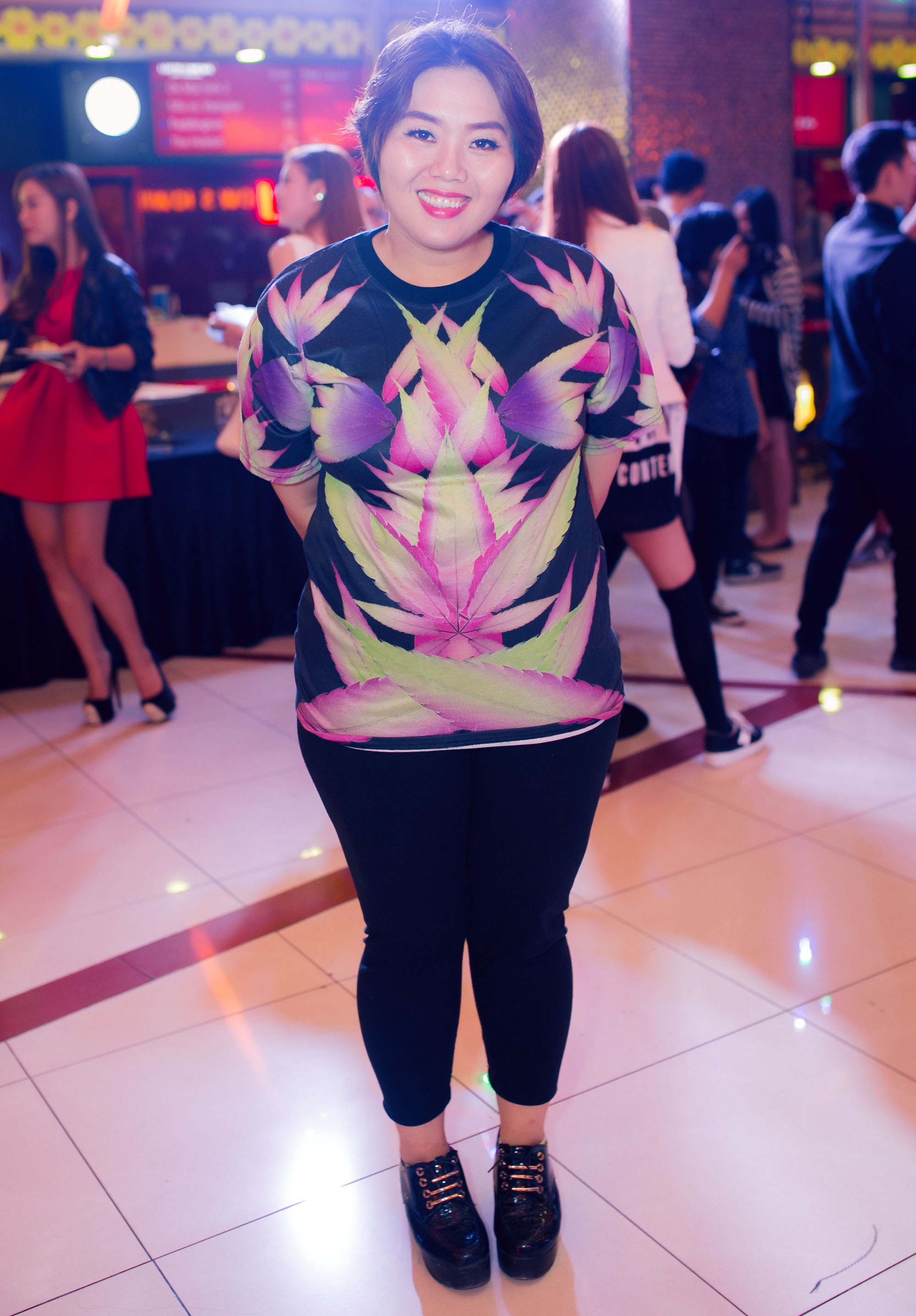Phương Anh Idol sử dụng trang phục hoạ tiết nhằm che bớt khuyết điểm thân hình tròn trịa.