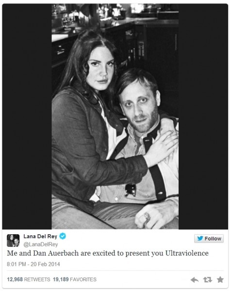 | Chia sẻ về sự hợp tác giữa Lana Del Rey và Dan Auerbach trên Twitter của cô hồi đầu năm. |