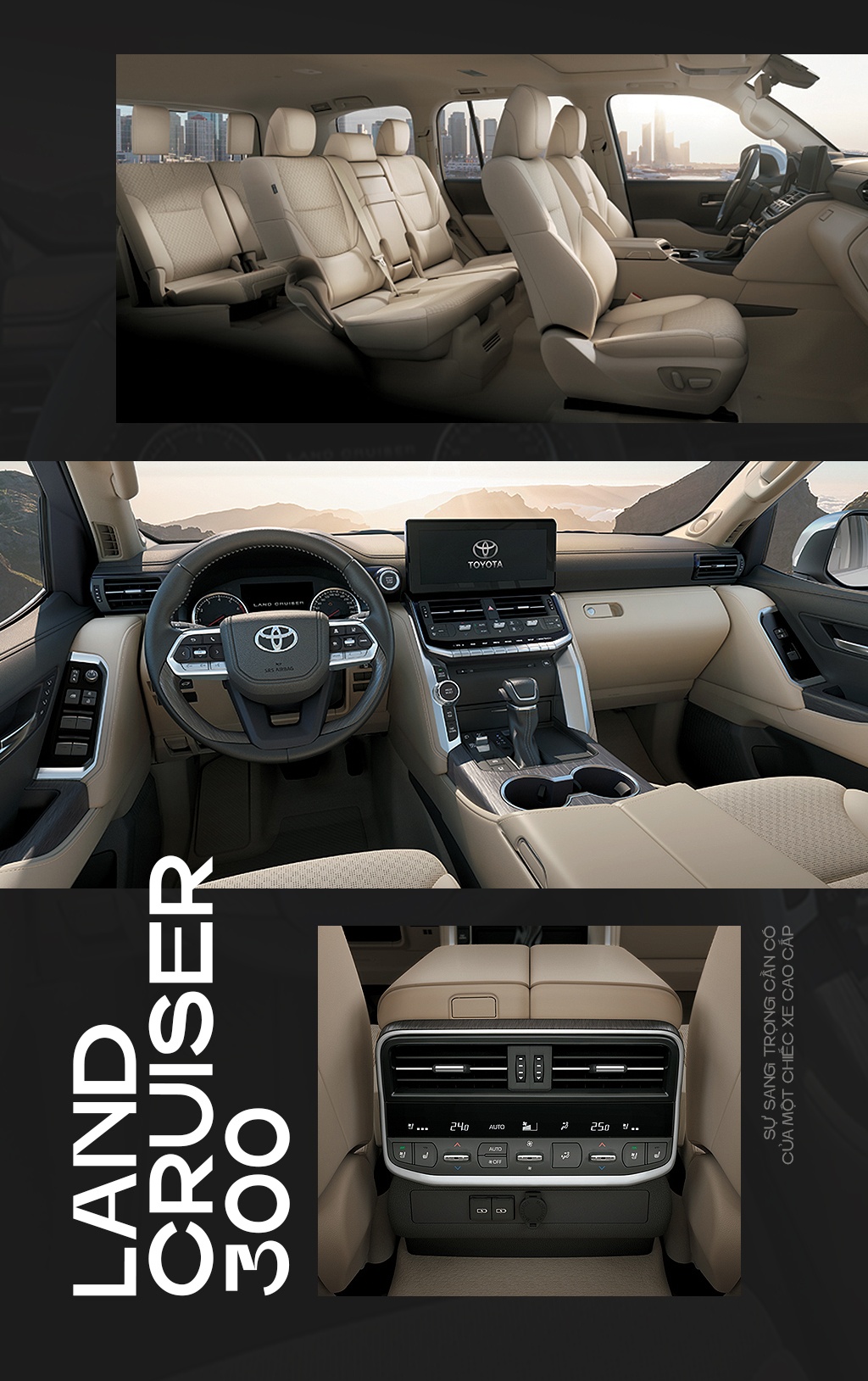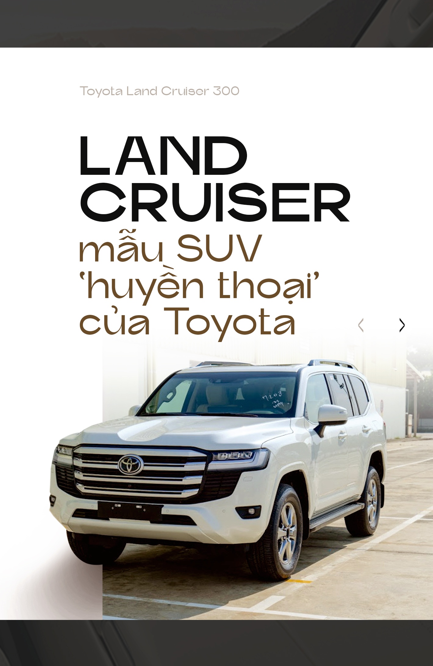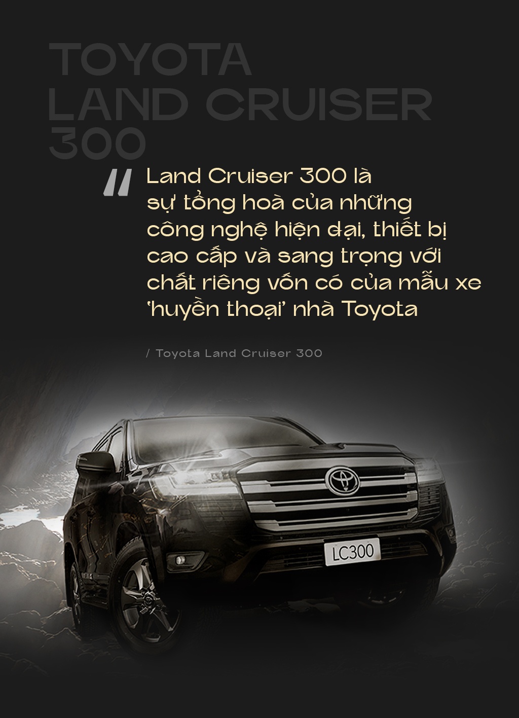 Land Cruiser luôn là mẫu xe đầu bảng của Toyota, với sự phong phú về trang thiết bị, cùng công nghệ mới nhất mà hãng đang sở hữu. Thế hệ Land Cruiser 300 vẫn giữ lại những chất riêng của dòng xe “huyền thoại” nhà Toyota, với độ bền bỉ và khả năng off-road mạnh mẽ. Song song đó, sự tổng hoà của những công nghệ hiện đại, thiết bị cao cấp và sang trọng cũng góp phần củng cố vị thế của Land Cruiser - mẫu xe vốn đã khẳng định đẳng cấp trên thế giới trong suốt 70 năm qua.