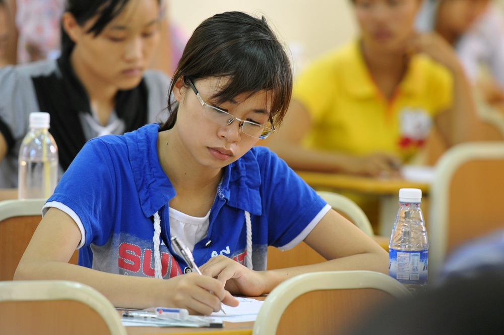 | Thí sinh làm bài thi. Ảnh: Hoàng Hà. |