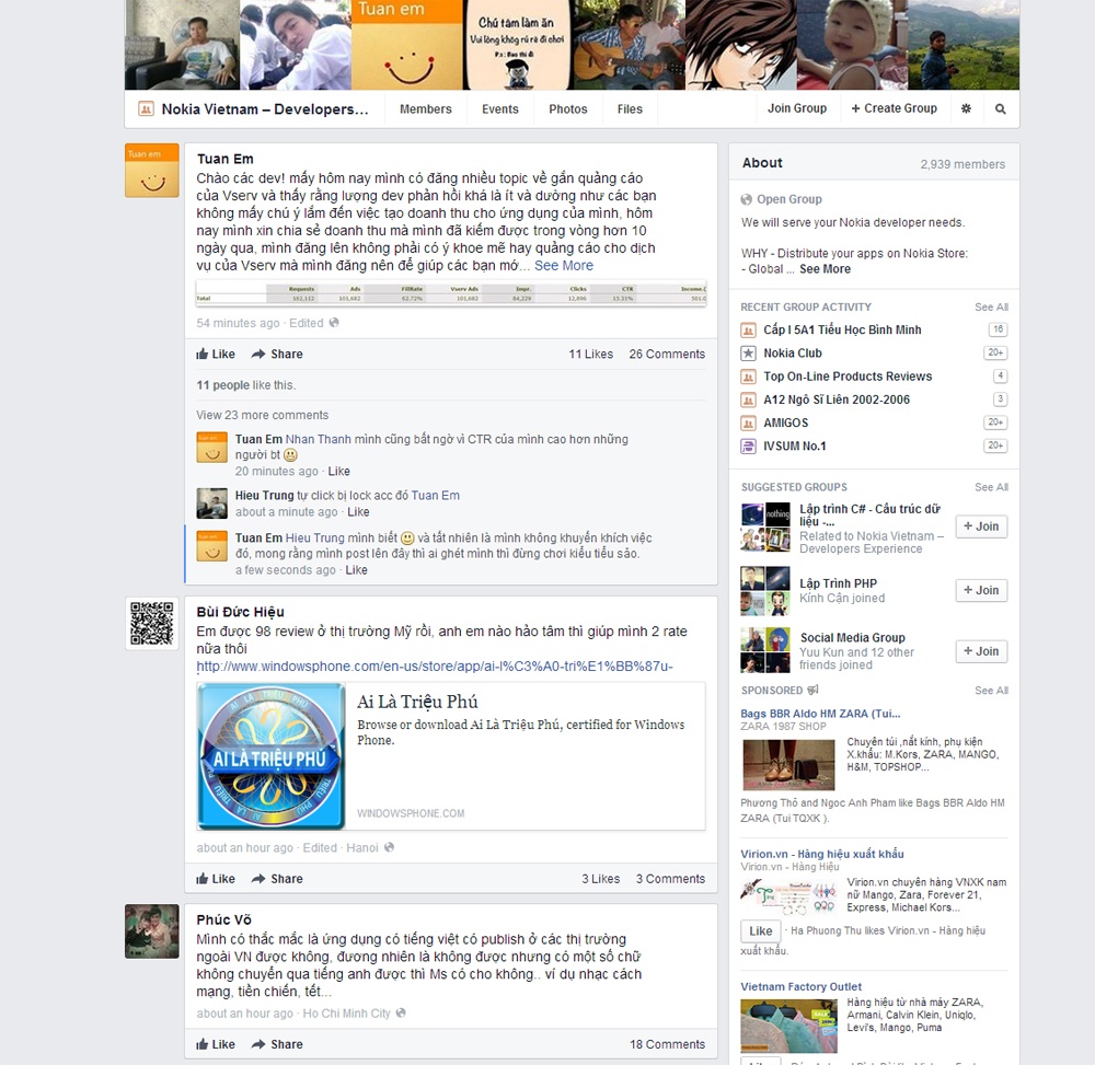 - Bá Quang: Windows Phone là một OS còn trẻ, có rất nhiều cơ hội để các bạn khám phá và phát triển. Đối với các bạn còn mới với hệ điều hành này, hãy bắt đầu bằng việc mở rộng mối quan hệ của mình với những người đã có kinh nghiệm. Nokia Vietnam - Developers Experience Facebook Page, với gần 3.000 thành viên là cộng đồng chia sẻ và học hỏi kinh nghiệm của các bạn lập trình viên Windows Phone.