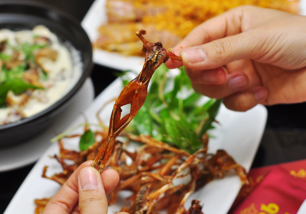 Nhái chiên giòn - món ăn có cái tên dí dỏm là "người đẹp chân dài" rất được cánh mày râu ưa thích, chọn làm món nhậu lai rai.