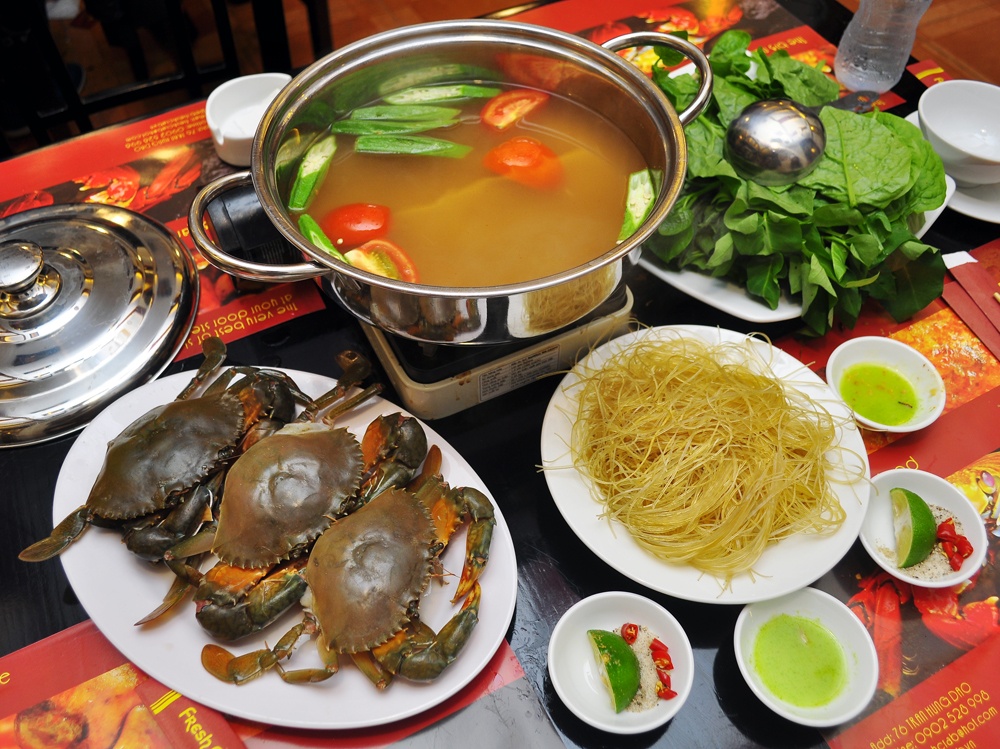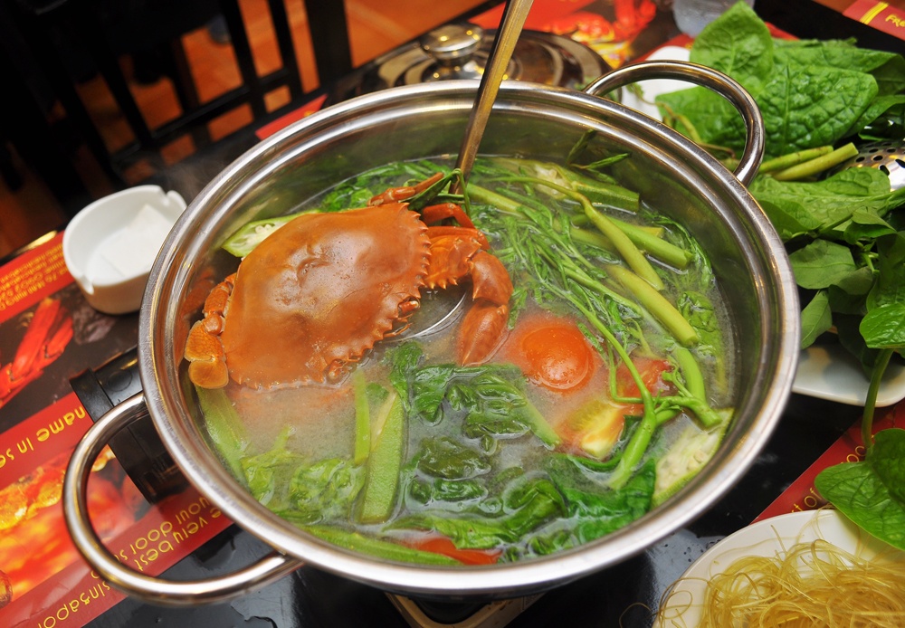 Cua ngon nên thịt ngọt chắc, phôi ra nước lẩu tăng thêm vị đậm đà cho món ăn.
